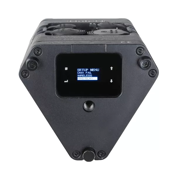 - Master/slave-modus: de master stuurt de slaves draadloos of via XLR-bekabeling aan en creëert zo prachtige lichtshows