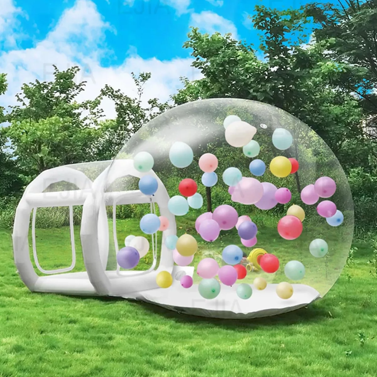 Het Bubble House is ideaal voor bijvoorbeeld verjaardagen, kinderfeestjes, babyshowers, bruiloften, gender reveals, bedrijfsfeesten of openingen. Binnen in de koepel liggen ballonnen die vrij kunnen bewegen wanneer er gespeeld of gesprongen wordt, wat zorgt voor een vrolijke en interactieve ervaring voor jong en oud. Het is niet alleen leuk om in te spelen, maar ook een echte blikvanger voor foto’s en video’s, waardoor gasten mooie herinneringen kunnen vastleggen.