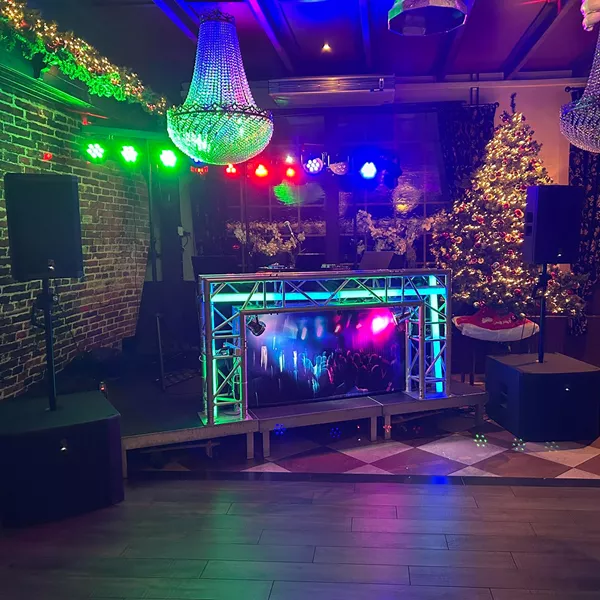 Met maar liefst 8 LED Parren, en diverse professionele verlichting fixtures brengen we een feestelijke sfeer naar elke gemiddelde locatie, Ook de DJ Booth zelf staat mooi in de verlichte LED tubes.