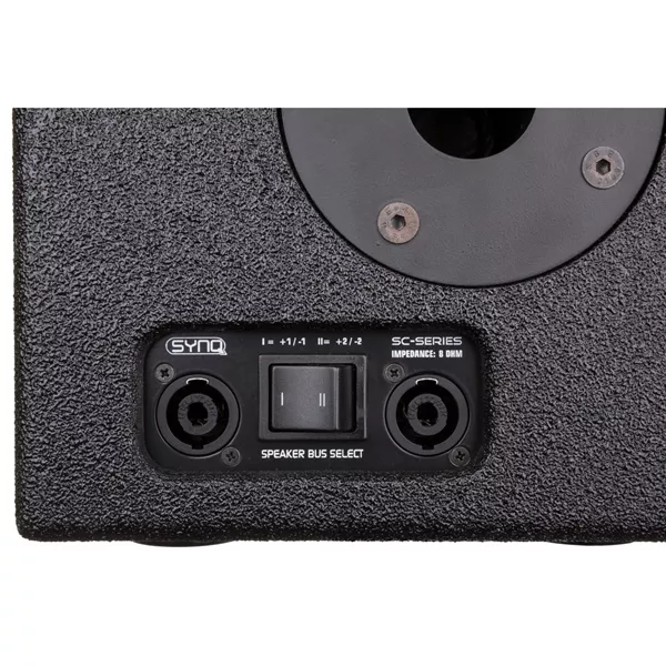 - De 4-polige Speakon-ingangen/uitgangen, in combinatie met een impedantie van 8 ohm en de mogelijkheid om eenvoudig te schakelen tussen de +/-1 en +/-2 Speakon-connectoren, maken het mogelijk om meerdere SC-08-luidsprekers in serie te schakelen via één 4-aderige luidsprekerkabel.