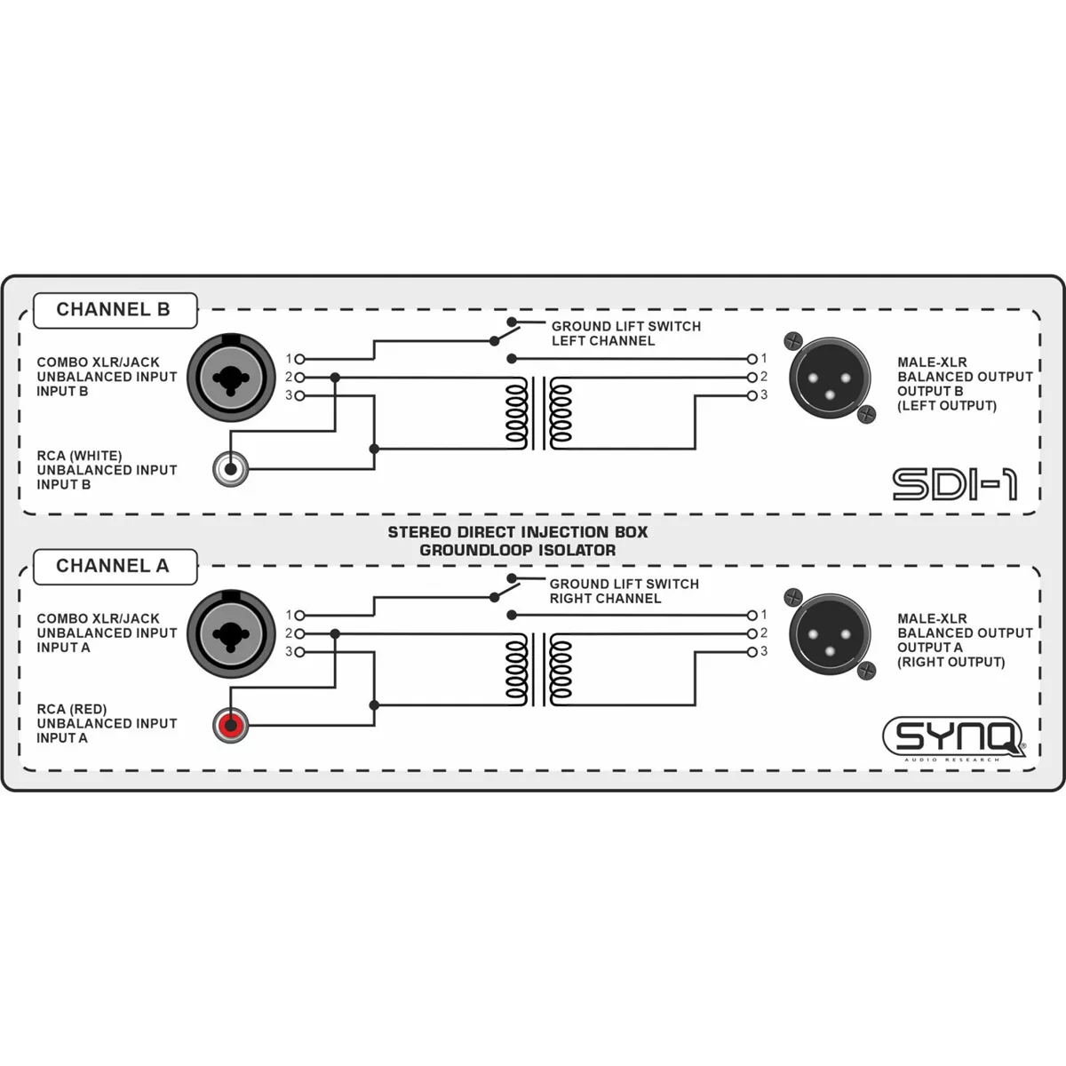 - Zet ongebalanceerde audiosignalen om in gebalanceerde signalen, zodat ze over lange symmetrische kabels kunnen worden overgedragen met maximale bescherming tegen allerlei soorten interferentie.